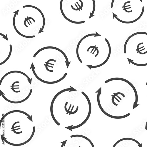 Vector circle icon with arrow and euro sign. Currency exchange symbol seamless pattern on a white background.
