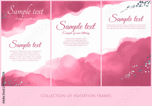 vector collection of rose stylized invitation with imitation watercolor and silver texture