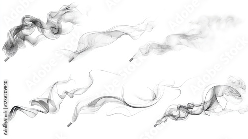 Vector Collection or Set of Realistic Cigarette Smoke or Fog or Haze with Transparency Isolated can be used with any Background, on white background