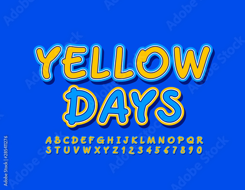 Vector colorful poster Yellow Days. Bright creative Font. Playful hand written Alphabet Letters and Numbers