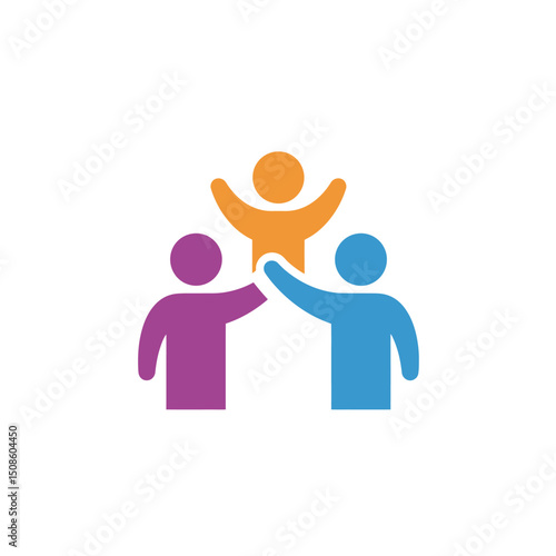 Vector community group three people help icon in flat style. Youth symbol persons team partnership for web site design, logo, app. Leadership connection meeting