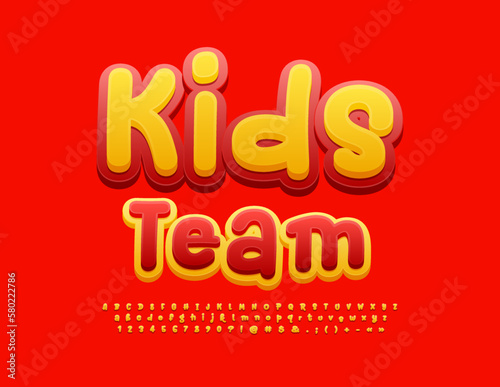 Vector creative Sign Kids Team. Funny bright Font. Playful style Alphabet Letters and Numbers