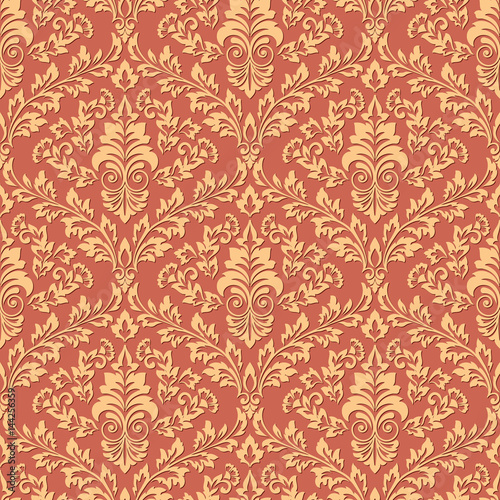 Vector damask seamless pattern background. Classical luxury old fashioned damask ornament, royal victorian seamless texture for wallpapers, textile, wrapping. Exquisite floral baroque template.