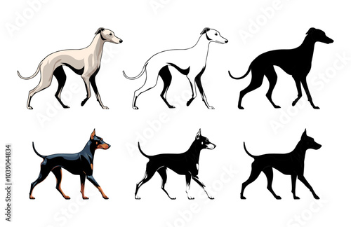 silhouette, vector, animal, dog, animal, illustration, pet, icon, farm, wild, black, set, collection, nature, running, silhouette, outline, mammal, design, whippet, doggy, puppy, puppy, minimalistic, profile, walking