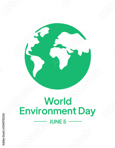Vector flat illustration of planet Earth in green color and text World Environment Day