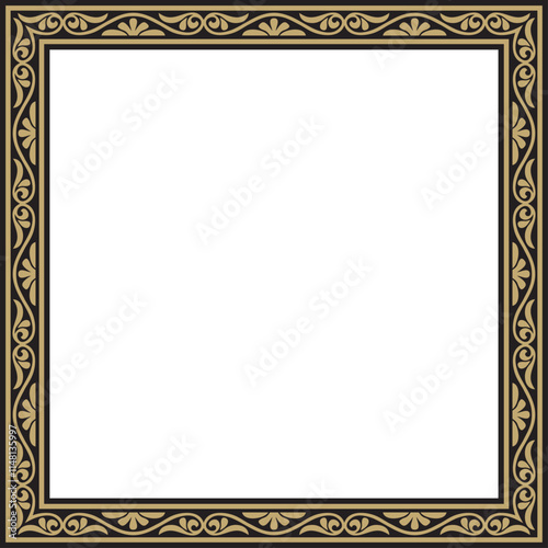 Vector gold and black square classic byzantine ornament. Rectangle, border, Ancient Greece, Eastern Roman Empire frame. Decoration of the Russian Orthodox Church