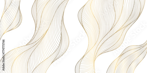 Vector gold line wave background, abstract luxury elegant pattern. Glitter flow japanese style shape, river, sea cover.