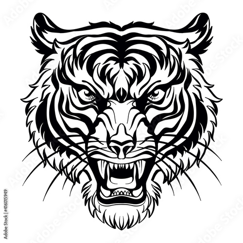 tiger, vector, mascot, isolated, logotype, tattoo, head, wild, design, print, abstract, icon, power, emblem, signs, zoo, danger, nature, animal, symbol, sport, black, eye, predator, tribal, proud, contour, luxury, portrait, cruel, background, art, strong, pride, graphic, silhouette, creative, attack, beast, club, fang, fashion, modern, muzzle, force, roar, sticker, t-shirt, cat