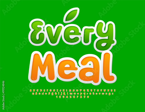 Vector healthy concept Every Meal. Funny Playful Font. Creative Alphabet Letters and Numbers set.