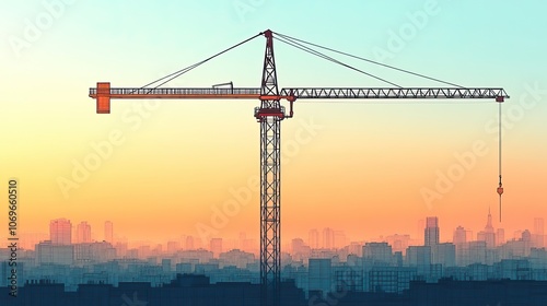 Vector icon of a construction crane used in shipping, building, and transportation industries.