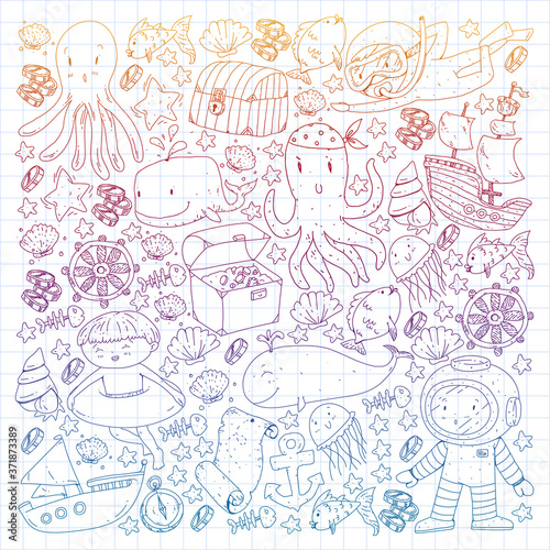 adventure, anchor, animal, art, background, bird, birthday, cartoon, chest, children, crab, cute, element, fish, flag, girl, icon, illustration, island, children, little, map, nautical, octopus, parrot, party, pirate, sailor, sea, set, ship, skull, smile, symbol, tattoo, texture, travel, treasure, vector, water, wheel, whale, ocean, beach, vacation, children, children, kindergarten, diving, diver