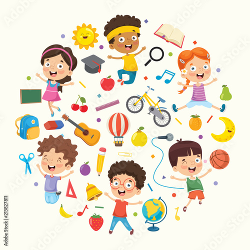 Vector Illustration Collection of Kids and Objects