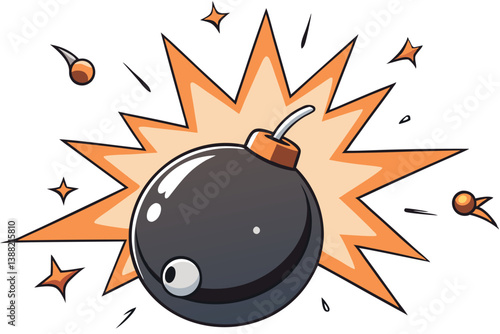 Vector illustration depicting a cartoon explosion with dynamic colors and bold lines in a playful style, showcasing an impact with contrasting black and orange elements