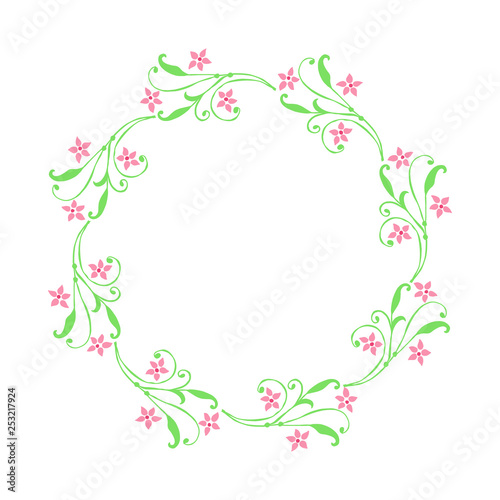 Vector illustration design artwork frame flower pink leaf green with greeting card template hand drawn