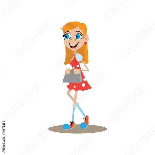 young, girl, woman, dress, red, short, pursed, lady, hand, happy, smiling, vector, illustration, isolated, cartoon
