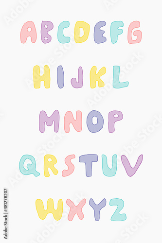 Vector illustration hand drawing cute fatty cartoon fonts. Perfect for educational poster, learn alphabets, printed home decor, kindergarten, greeting card. Its editable.