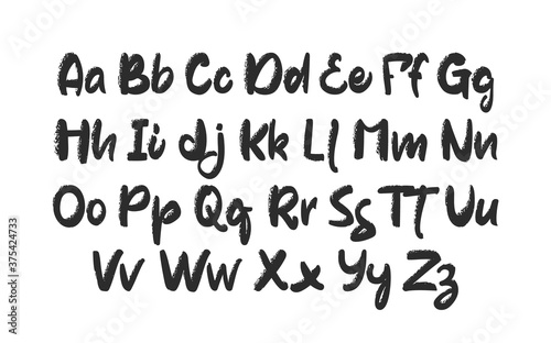 Vector illustration: Hand drawn brush font. English Abc alphabet on white background.