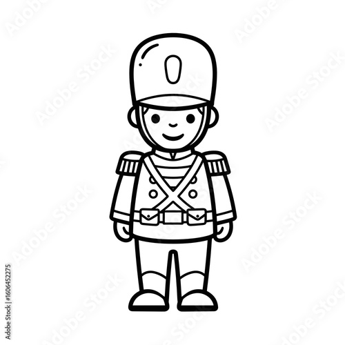 Vector illustration of a cheerful toy soldier character for coloring on white background