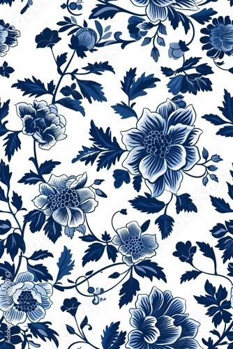 Vector illustration of a Chinese porcelaininspired design with traditional blue and white floral motifs, perfect for textile or ceramic print