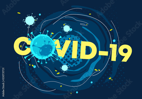 Vector illustration of a coronavirus molecule in the inscription Covid-19