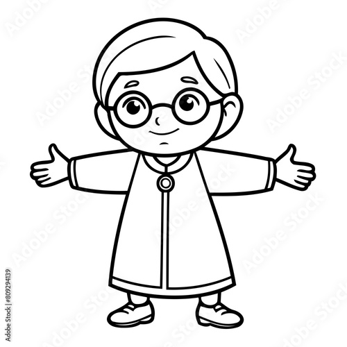 Vector illustration of a cute oldwoman doodle colouring activity for kids