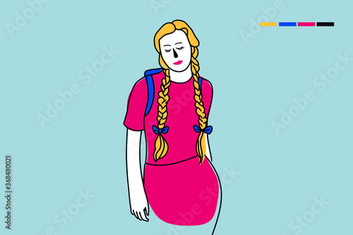 woman, fashion, young, beauty, children, white, illustration, beautiful, person, isolated, people, dress, hair, lady, cute, portrait, happy, blue, model, face, cartoon, school, 1, vector, smile