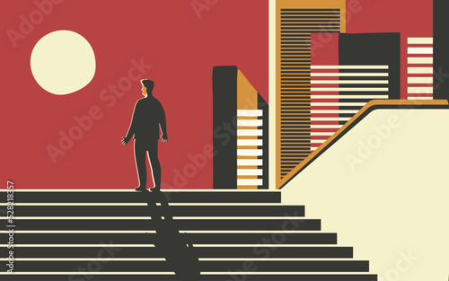 man, loneliness, lonely, alone, people, person, male, adult, silhouette, solitude, sun, thinking, sorrowful, sad, sunrise, thoughtful, standing, sunset, concept, mystery, 1, minimal, emotion, solitary, depression, silence, dawn, art, emotional, single, back, twilight, dramatic, hope, abandoned, uncertainty, moody, melancholy, imagination, inspiration, retro, vintage, city, town, stair, night, night time, moon
