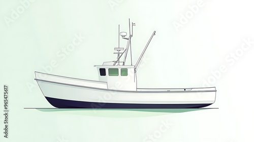 Vector illustration of a white boat on a light mint green background with minimalist details, leaving room for travel-related designs.
