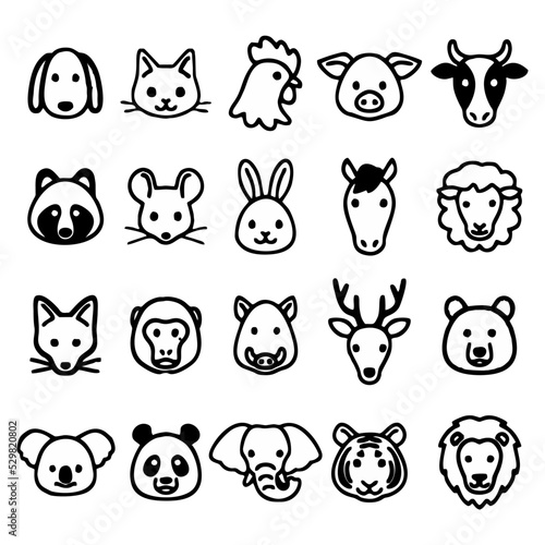 icon, logotype, illustration, vector, design, isolated, animal, head, cartoon, cervid, dog, cat, pig, mouse, horse, panda, rabbit, koala, chicken, penguin, colouring, sticker, set, elephant, animal, colourful, graphic, cute, wild, zoo, character, forest, collection, jungle, safari, background, mammal, nature, colours, grey, fauna, mascot, art, doodle, adorable, flat, print, group, wildlife