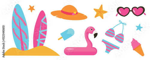 vector illustration of beach accessories. isolated set of summer-themed stickers