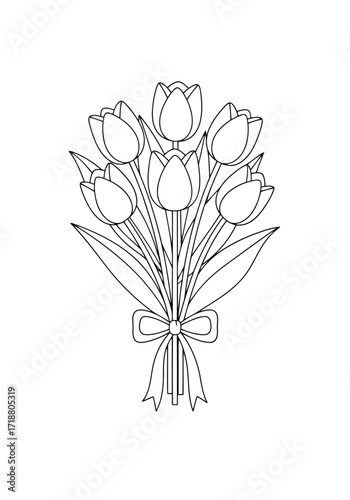 tulip, flower, floral, bloom, blossom, stem, leaf, bouquet, bunch, arrangement, garden, nature, plant, botany, spring, summer, beauty, fragrance, delicate, elegant, simple, clean, outline, drawing, vignetting, line, art, graphic, design, empty, blank, template, copy, space, decoration, ornament, gift, love, romance