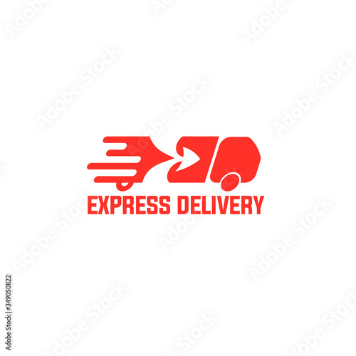 Vector illustration of logistic truck decorated with negative space of arrow or direction icon isolated on white background perfect for logistics company logo