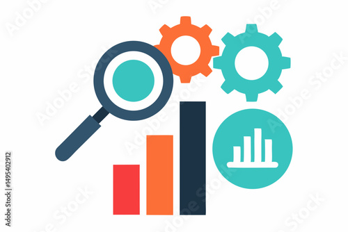 vector illustration of magnifying glass with business graph