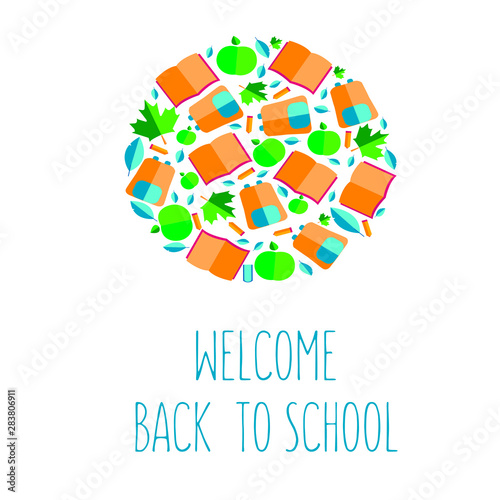 Vector illustration welcome back to school. Handwritten letter. Inscription. For printing products: greeting card, poster. As an advertising poster, as a cover for posts on social networks.