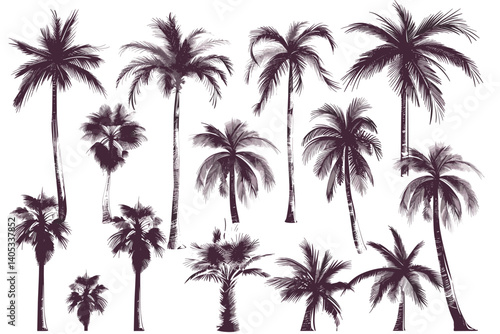 Vector illustrations Set realistic black silhouettes isolated tropical palm trees on a white background
