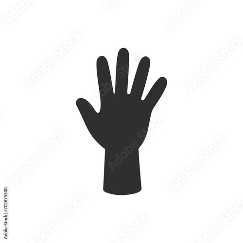 Vector image of a black silhouetted hand displayed in a flat design, perfect for representing the concept of communication, help, or direction.