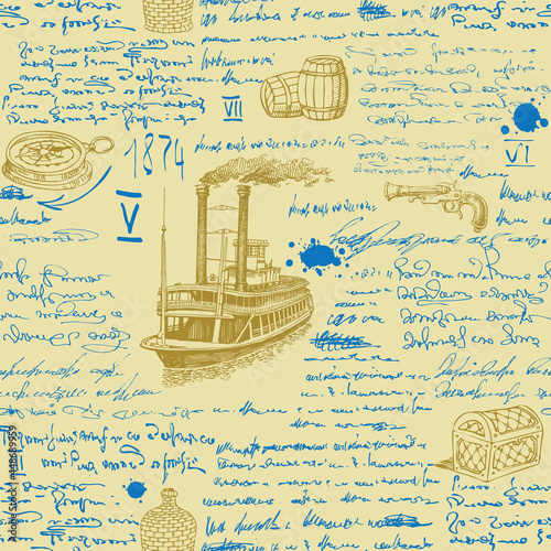Vector image of a seamless texture in the style of a medieval nautical record of the captain's diary engraving sketch