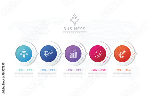 Vector infographic business presentation template with circular interconnection with 5 options.