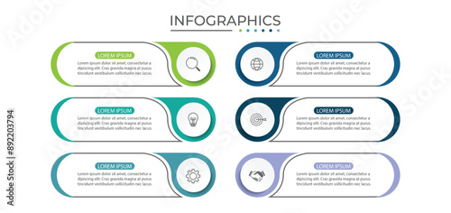 Vector Infographic label design template with icons and 6 options or steps.
