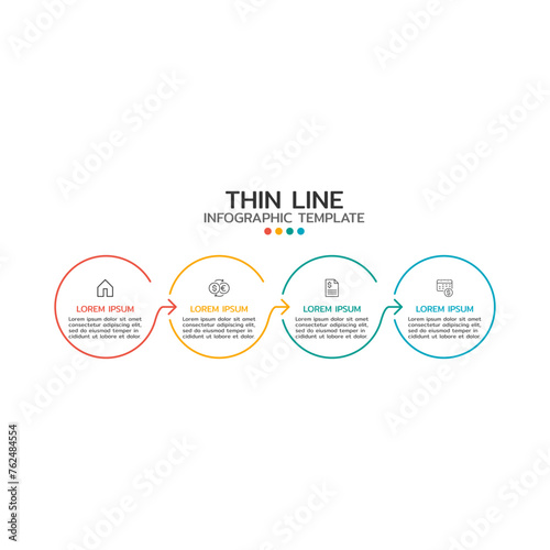 Vector infographic thin line arrow design label with icons. Business concept with 4 options or steps.