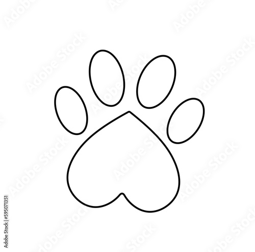 Vector isolated one single heart shaped paw dog cat kitten bear colorless black and white contour line easy drawing
