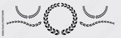 Vector laurel wreath isolated, black silhouette circular laurel foliate, wheat and oak wreaths depicting an award, laurel wreath vector on white background