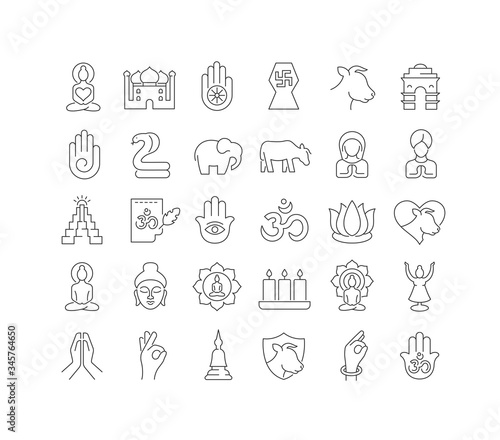 day, holiday, india, icon, symbol, design, set, vector, flat, signs, process, web, line, collection, element, linear, digital, logotype, modern, infographic, pictogram, concept, graphic, ancient, celebration, culture, emblem, hindu, hinduism, holy, religion, sacred, jainism, jain, indian, country, meditation, architecture, cow, taj mahal, hand, prayer, snake, elephant, animal