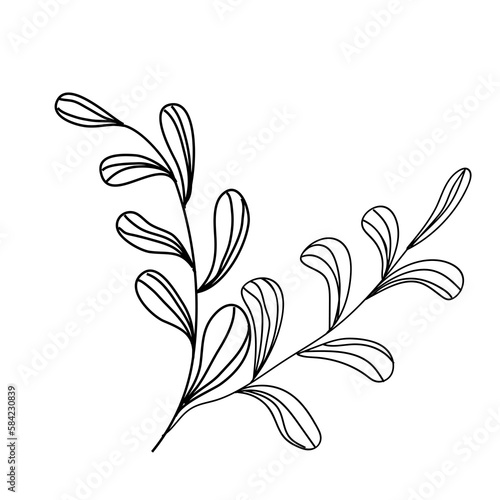 Vector linear hand drawn decorative leaves, black and white botanical illustrations. PNG