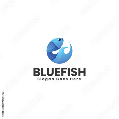 Vector Logo Illustration Blue Fish Gradient Colorful Style