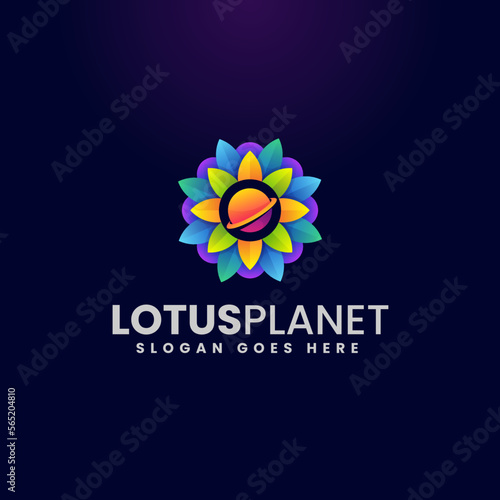 Vector Logo Illustration Lotus Planet Gradient Colorful Style.