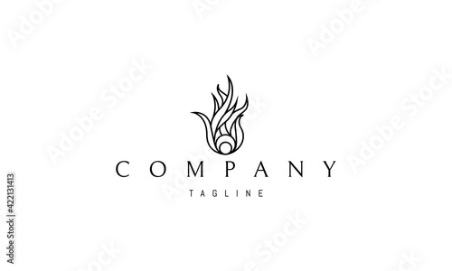 Vector logo with an abstract image of a flame at the base of which the sun.