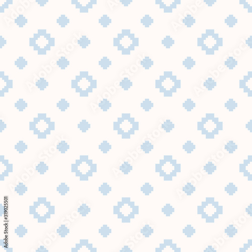Vector minimalist floral geometric seamless pattern. Subtle repeat texture with small crosses, squares, flower silhouettes, snowflakes. Pixel art background. Ethnic folk motif. Winter holiday design