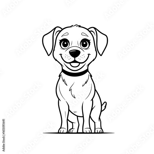 Vector outline of cute cartoon dog with big eyes and a happy face