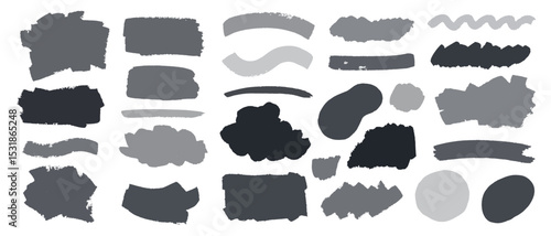 Vector paint bold brush strokes. Ink black hand drawn thick grunge lines abstract shapes, smears. Overlay, textures, brushes design.